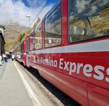 The Red train to Pontresina was spectacular, well worth the early rising. The views of glaciers and the mountains were something we may never see again.